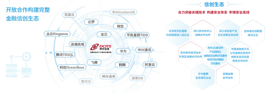 第四,实现最全合作生态、最广市场覆盖。已构建金融业规模最大的信创生态体系,包括入驻国家、省级的信创园区及示范基地;与产业生态伙伴形成信创联盟、战略伙伴关系,推进联合解决方案落地;以及与金融机构成立联合实验室,进行技术产品创新等,进而广泛地推动金融信创产业加速发展。合力突破关键技术,构建安全体系,牢铸安全底线。